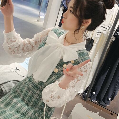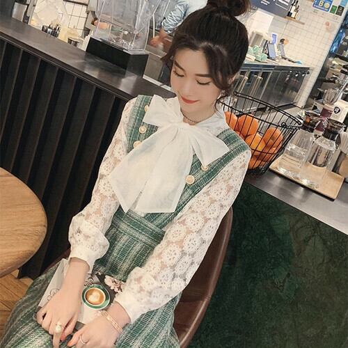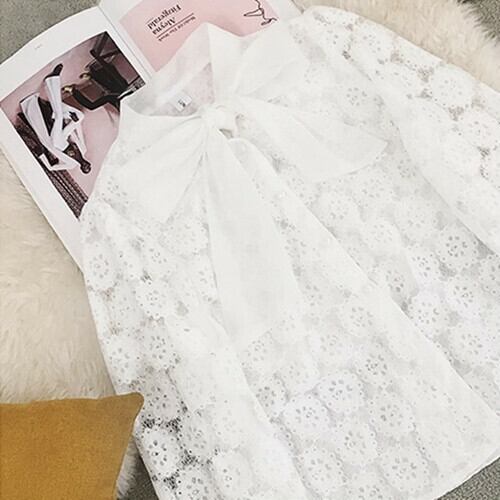花模様レースのリボンタイブラウス