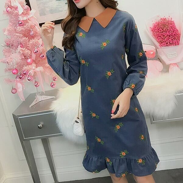 花柄刺繍のコーデュロイワンピース