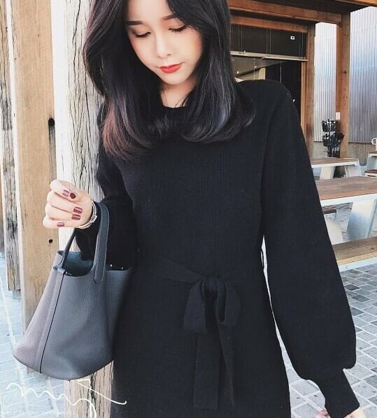 パフスリーブニットワンピース