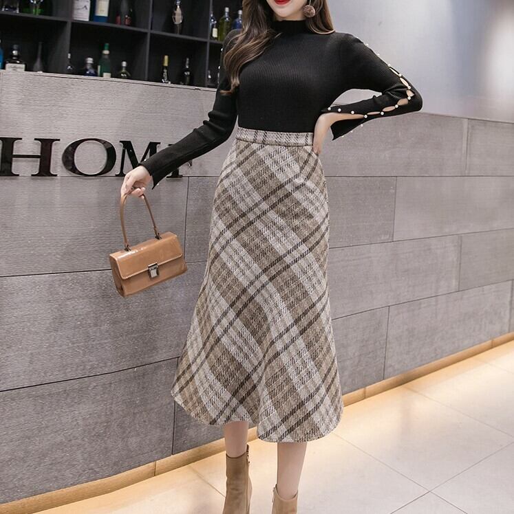チェック柄ミディアム丈スカート