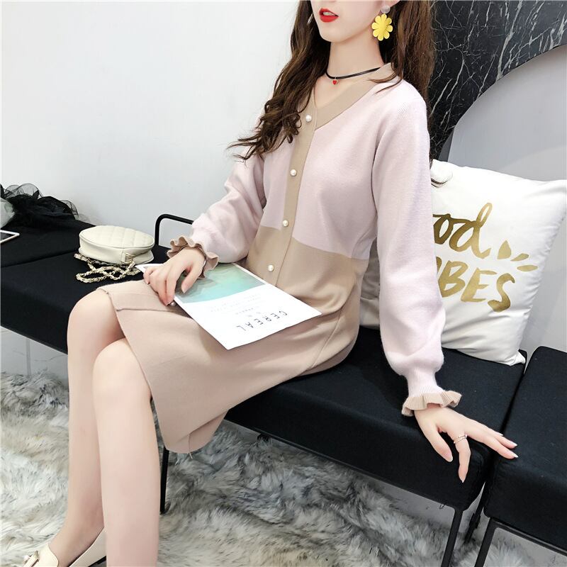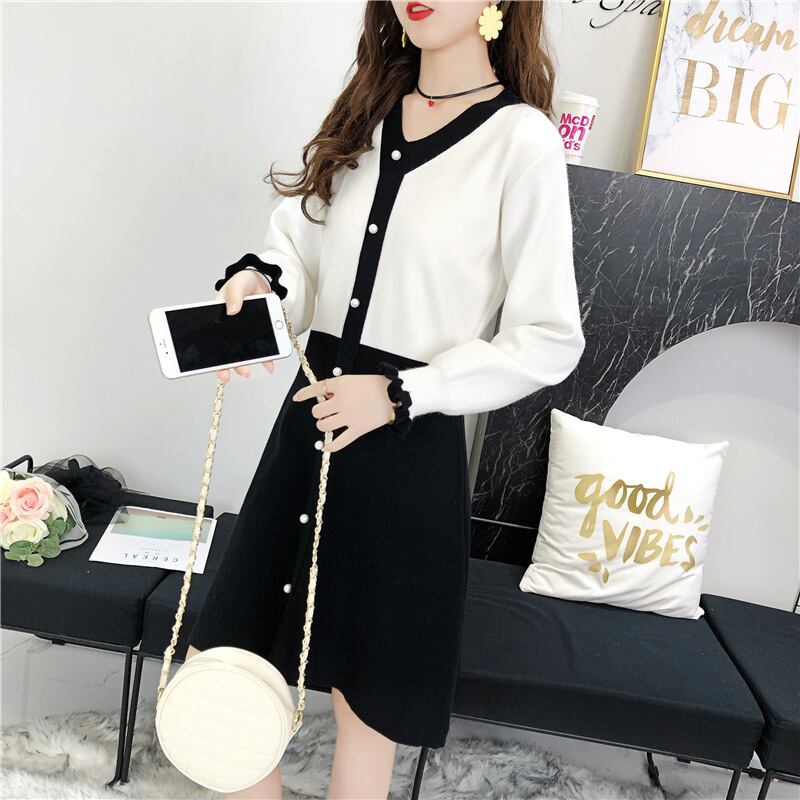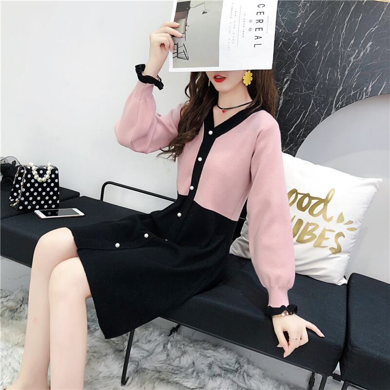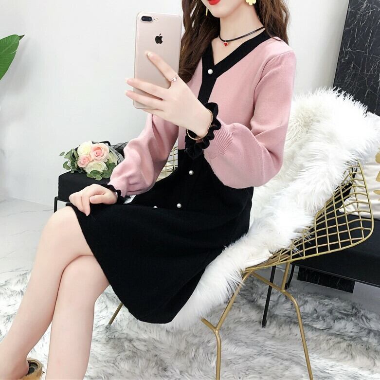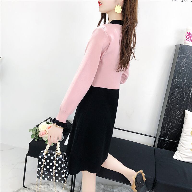 バイカラー ニットワンピース