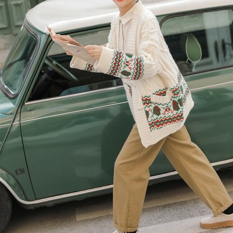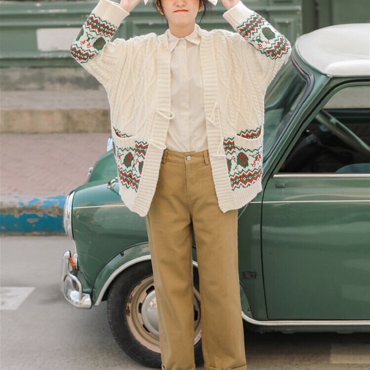 トグル留め編込みカーディガン